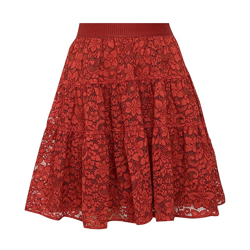 哥弟 精致立体蕾丝花三层褶裙短裙1200367