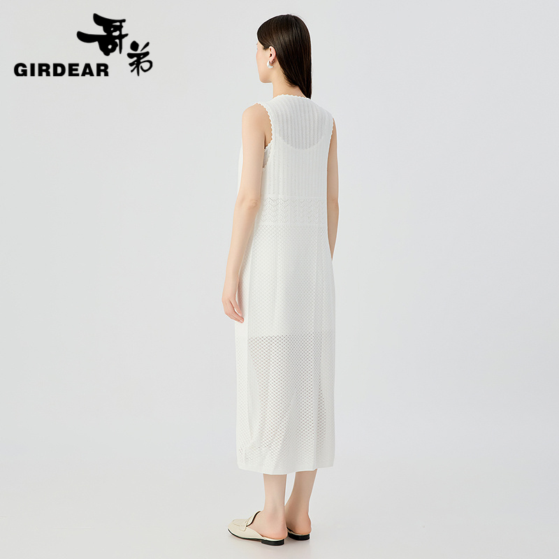哥弟 波西米亚风无缝镂空长款无袖针织开衫148028