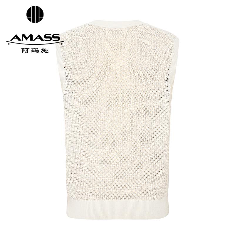 阿玛施AMASS 简约质感镂空圆领无袖针织罩衫538052